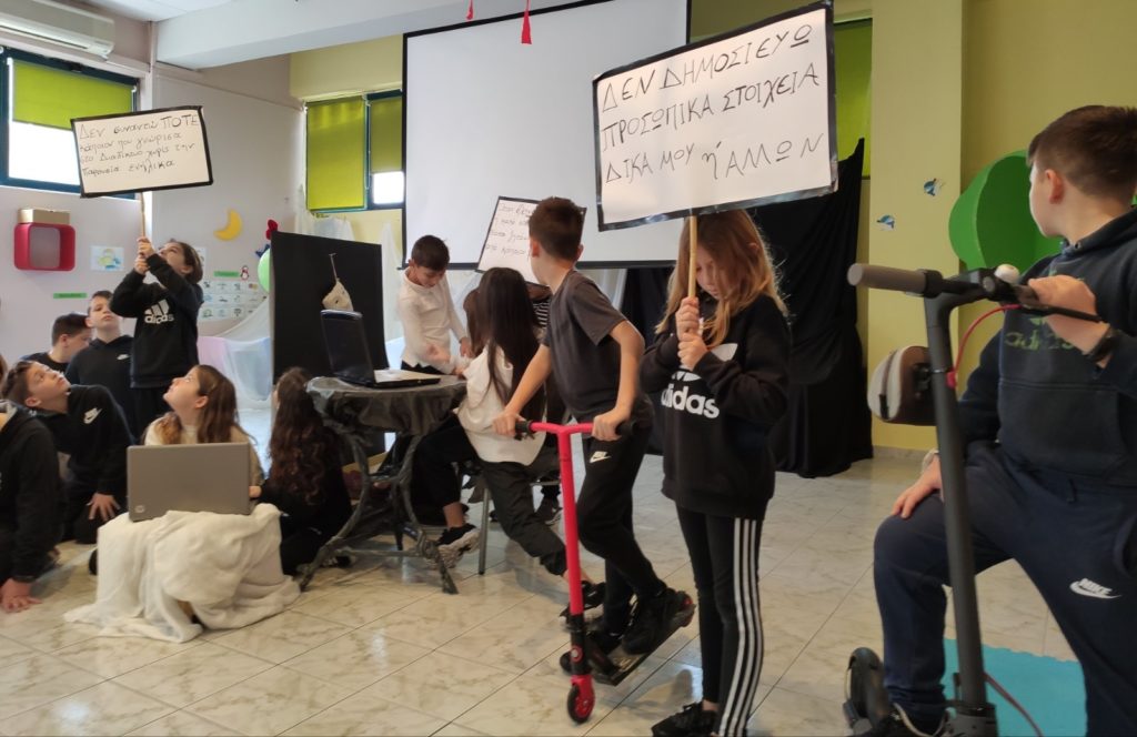 Μία εβδομάδα αφιερωμένη στην ασφάλεια στο διαδίκτυο! Η ενημέρωση και η ευαισθητοποίηση των παιδιών επιτευχθεί με αλληλεπιδράσεις για σχετικά ζητήματα στο μάθημα ΤΠΕ και με την εκδήλωση που πραγματοποίησαν οι μαθητές και οι μαθήτριες της Ε’ τάξης. Τα παιδιά οργάνωσαν και παρουσίασαν ένα θεατρικό δρώμενο σε παιδιά Δημοτικού και Νηπιαγωγείου. Έτσι, αναδείχθηκαν ζητήματα που επηρεάζουν αρνητικά τα παιδιά κατά τη χρήση των δυνατοτήτων του διαδικτύου!! Σήμερα τα παιδιά της Ε’ τάξης έστειλαν ένα μήνυμα που μας αφορά όλους!!
